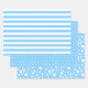 Drei Muster in hellblauem und weißem Himmel: Grundstreifen, Polka-Punkte und zufällige Punkte.