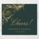 Diese eleganten Hochzeitsflaschen-Etiketten sind mit einem Vintagen goldblühenden Damast-blüh und Typografie-Design von Imitaten goldene Kalligraphie-Skript mit dem Wort Cheers!, mit Ihren Namen und Hochzeitsdatum, um auf einem smaragdgrünen Hintergrund zu personalisieren. Herzlichen Glückwunsch für Ihre Hochzeit und Ehe! Entworfen von Susan Coffey.