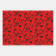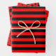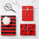 Drei Muster in Rot und Schwarz: einfache Streifen, Polka Punkte und zufällige Punkte.
