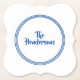 Paper Untersetzer Set in den Farben Royal Blue und White mit einem individuelle Name Beispieldruck. Passen Sie dieses Element an, und ändern Sie den Beispielnamen in Ihren Namen.