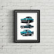 Mit dieser schönen Grafik, die drei Vintage-Autos in Retrotönen präsentiert, können Sie Ihren Platz mit Nostalgie erleben. Das auffallende und dennoch klassische Design verkörpert den Reiz klassischer Automobile und Vintager Stilrichtungen und ist somit ein Muss für alle Autoliebhaber und Liebhaber der Retro-Dekoration.