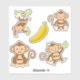 Set von 4 individuell geschnittenen Aufklebern von niedlichen Affen und einer Banane. Für den Versand von Etiketten, Scrapbooking, Laptop-Skins, Handygehäuse, Doodle Journals oder gehört zu Label für die Identifizierung von Immobilien. Die persönlichen Namen sind einfach zu bearbeiten oder ganz zu entfernen.