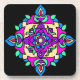 Ein Set von sechs eleganten Untersetzer mit einem brillant farbigen Rangoli-Muster in schockierendem Rosa, Türkis, Neon-Grün und Beige, von einem digitalen Design von Judy Adamson.