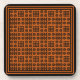 Ein Set von sechs sehr schicken, quadratisch mit Kork unterlegten Untersetzer, mit einem Muster traditioneller walisischer Tapisserie-Motive in Schwarz auf einem Backstein-Rot-Hintergrund.