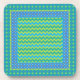 Ein Set von eckigen korkgedeckten Untersetzer, mit einem "Blue Moons" Mix'n'match von Chevrons und Polka Dots in Dazzling Blue, Neon Green, Türkis und Smaragdgrün. Teil der Posh & Painterly 'Blue Moons' Kollektion; von Judy Adamson aus einer handbemalten Papierkollektion.