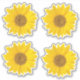 Ein Set von vier individuellen Aufklebern mit einem nahen Foto einer hellgelben Sonnenblume.