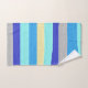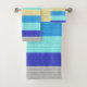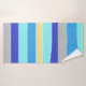 Feines, blau und goldgelb gestreiftes Badetuch Set.