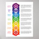 Sieben chakra Poster-Diagramm und Symbole vor dunklem Hintergrund.