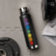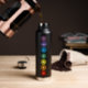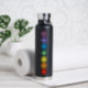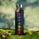 Eine grafische Gestaltung der sieben Chakren auf einer Wasserflasche.