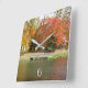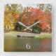 Seven Springs Fall Bridge III Herbstlandschaft Quadratische Wanduhr