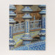 Blaue und gelbe Baudetails am Plaza de Espana in Spanien