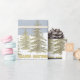 Ein bekannter Holiday-Gruß wurde digital bearbeitet, um diesen grafischen zeichn aus Gildengold, Bäumen zu schaffen, gruppiert, auf einem schneebedeckten Hintergrund mit leuchtendem Symbolischen, Heiligen Stern, gegen einen schieferblauen Himmel.