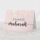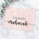 Diese elegante rosa islamische nikah Hochzeitsgratulations-Karte enthält das Wort "Shaadi Mubarak" auf einem rosa blumigen Hintergrund in einem modernen Drehbuch-Schriftart. Die perfekte Karte, um mit einem Hochzeitsgeschenk oder mit einem Geldgeschenk an der Walima oder der Saidi-Ehezeremonie, dem Empfang oder dem Henna Party Tag zu gehen.