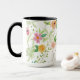 Die Tasse des Shabby Chic "Floral Coffee" ist mit rosa Blume, gelben Blumen, violetten Blumen und roten Blume auf einem Feld grüner Blätter gestaltet.