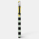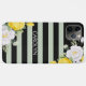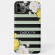 Moderne hübsche Rosenblütengestaltung auf einem schwarz-hellgrünen Streifen Muster. Mit Raum zum Anpassen oder Personalisieren mit einem Namen, Monogramm oder Initialen Ihrer Wahl. Schönes, elegantes und stilvolles Cover für den Trend-erfahrenen und kunstliebenden angesagten Trendsetter, künstlerischer Motif-Liebhaber, der will, ihr Handy vor Staub und Schmutz, Abnutzung und Tränen zu schützen. Dieses Design ist erhältlich in Apple iPhone 6, 7, und 8 Plus, 10 oder X, XR, XS, 11, 12, 13 Mini, 14, 15 Plus, und Pro Max Handy Hüllen. Zeigen Sie Ihren Stil, sehen Sie modern aus und fühlen Sie sich stilvoll mit einem einzigartigen Design auf einem mobilen Zubehör Ihrer Wahl.