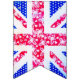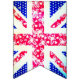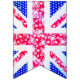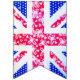 Vervollkommnen Sie für die Verzierung eines britischen themenorientierten Ereignisses. Tee-Party, machen Messe in Handarbeit, kaufen Front, klemmen fest, holen und kaufen Ereignisse. Patriotischer Gewerkschafts-Jackentwurf.