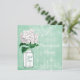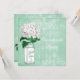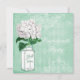 Elegante tadellose grüne und weiße kundenspezifische Junggeselinnen-Abschiedseinladungen mit einer niedlichen Vintagen Blumenillustration des weißen und grünen Glasball-Maurerglases und des hübschen weißen Hydrangea auf einer stilvollen antiken Shabby Chicminzen-Grüncollage mit schönen weißen verzierten Dekorationen, einer Libelle und dem verblaßten Schreiben auf ein stilvolles Harlekinmuster. Auf der Rückseite von lädt ist bezaubernde weiße Druckperlen und Spitzematte mit Text ein, damit Sie mit Ihren Partysonderkommandos personifizieren. Nobel, modisch, modern, modern lädt perfektes für Frühling, Sommer, Fall/Herbst und Winterereignisse ein. Aller Text kann leicht besonders angefertigt werden, um Ihren Bedarf zu erfüllen und Sie können die Schriftartart, -farbe und -größe des Schriftartes ändern, wenn Sie wünschen. Ich habe zusammenpassende Hochzeitsprodukte in meinem Speicher. Wenn Sie irgendeine Unterstützung benötigen, die Ihr Produkt in Verbindung treten besonders anfertigt mit mir bitte, durch meinen Speicher und ich bin glücklich zu helfen. Perlenmatte durch ©Hazel Kinvig-Paul www.design-a-dream.co.