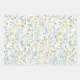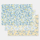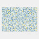 Lemon blossom and fruit pattern in lovely shades of blue, sage green and yellow on wrapping paper sheets
