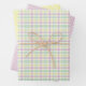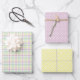 Vergnügen farbenfrohe Verpackungspapier Set. Mit niedlichen Gingham karierte Tartan Streifen und Punkten in hellgrün, blassgelb und pastellrosa Farben. Verziertes, trendiges, modernes und skurriles Hipster Design für die Liebhaber von Frühlings- und Osterthemen. Diese originelle, elegante, stilvolle und perfekte Geschenkpackung wird Freunden und Familie ein Lächeln auf die Gesichter geben, wenn sie ihre Frühlingsgeschenke entdecken.
