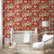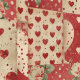 Shabby Chic-Patchwork-Muster Tapete. Hübscher Landhaus Hütte Stil. Schöne rote Herzen, Polka-Punkte und florale komplementäre Kombination.
