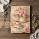 A soft vintage-style illustration featuring a delicate tea cup and saucer accompanied by a bouquet of pink roses. Gentle pastel tones, lace textures, and floral details create a romantic shabby chic composition inspired by classic tea time scenes.