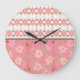 Küchen-, Kinderzimmer- oder Badewanne dekorative Wanduhr mit rosa blühenden gemusterten Gemischen Akzent mit Herzen. Der weiße und rosa Hintergrund kann auf jede beliebige Farbe umgeschaltet werden, um Ihre Wohngestaltung zu ergänzen.