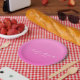 Shade of Pink Simple Minimalism Moderne Party Teller. Anpassen mit jedem Text. Matching-Elemente sind verfügbar.
