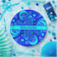 Ungewöhnliche moderne blaue Fraktal Kunstmuster. Entwerfen Sie für Ihre Teller und mehr.