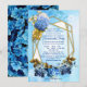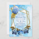Shades of Blue Water color Hydrangeas & Bronze Blätter Hochzeitsthema, einige mit goldgeometrischen Rahmen Trimmings zu personalisieren. Dieses moderne, stationäre Design ist perfekt für jede Feier im Freien in einem Sommergarten wie für eine Hochzeit.