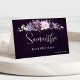 Die elegante und moderne Platzkarte mit Blumenstrauß im Hochsommer bietet einen Blumenstrauß aus Aquarellbäumen in lila Pflaumen, staubige Rose, staubige Rosa, Lila, Salbei mit üppig grünen botanischen Blätter und Eukalyptus.