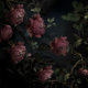 Eine wunderschöne Komposition aus üppigen, geschichteten Rose und wildem Laub vor einem schattigen Hintergrund. Die Blütenblätter erscheinen fast leuchtend und leuchten im dunklen Licht, als ob sie in einem verzauberten Dämmerlicht aufgehängt wären. Das Zusammenspiel von zarten Blumen und ungezähmter Vegetation verleiht dem Ganzen ein Gefühl von Rätsel und altem Charme, das an einen vergessenen Garten in der Abenddämmerung erinnert.