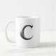 Eine elegante und moderne Tasse mit dem Buchstaben "C" in einem kühnen dunklen Stil. Das Design zeigt glatte, aber scharfe Kurven mit blitzähnlichen Rissen, umgeben von weichem Rauch und einem leuchtenden Halo, das Tiefe und ein Premium-Gefühl verleiht.