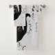 Das Badezimmer ist mit einem abstrakten Kätzchen und einem Mond dekoriert.