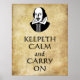 Dieses Poster zeigt ein zeichn von Shakespeare auf einem antiken Hintergrund. Das Poster Staaten "Keepeth Calm and Carry On" ist ein Stück auf den Poster des Zweiten Weltkriegs.