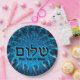 Dunkler Text mit "Shalom" (ש ל ם - hebräischer "Frieden") überlagert auf einem hellblauen Fraktal. Fügen Sie Ihren eigenen zusätzlichen Text hinzu.