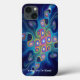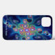 Ein mehrfarbiges (rosa, grün, blau, gelb) Fraktal auf dunkelblauem Hintergrund. Eine Interpretation, wie der Nachthimmel einem sibirischen Schamanen erscheinen kann, während er in einer Trance mit den Geistern kommuniziert. Fügen Sie Ihren eigenen Text hinzu.