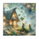 A dreamy cottagecore scene unfolds beneath a swirl of glowing shamrocks, soft lantern light, and whispery dandelion seeds drifting through a twilight meadow. Two tiny fairies rest beside a warm, thatched cottage, their luminous wings catching the soft teal and golden hues that dance through the misty night. The artwork blends magical whimsy, gentle folk charm, and serene pastel tones, creating a soothing world that feels both enchanted and timeless. AI generated artwork.