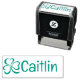 Green signature stamp. This lovely pre inked stamper features a shamrock illustration that symbolizes luck and Irish heritage. It is personalized with a custom name printed next to the lucky clover.