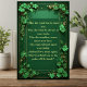 Celebrate timeless Irish heritage and heartfelt tradition with the Shamrocks Green “May the Road Rise” Irish Blessing Plaque, a beautifully designed décor piece that brings warmth, meaning, and Celtic charm into any home. Featuring the beloved Irish blessing “May the road rise up to meet you”, this plaque is framed with rich green shamrocks and gold accents, making it both a decorative statement and a meaningful keepsake. The text is customizable.