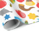 Großartiges Muster für die Verpackung von Rosh Hashanah Geschenken. Shana Tova mit traditionellen jüdischen Symbolen auf weißem Hintergrund.