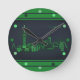 Shanghai Skyline Green Neon Look City Wall Runde Wanduhr
