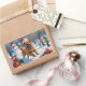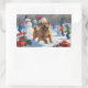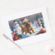 Shar Pei läuft im Schnee mit Weihnachtshut Rechteckiger Aufkleber