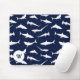 Cool marineblaue Mauspad mit Haien bedruckt wie große Weiß, Dreschmaschine, Hammerhead und Mako. Personalisieren Sie diese, indem Sie Ihren eigenen Initial hinzufügen.