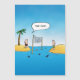 Ihre Speise! Dieser lustige Cartoon zeigt zwei Kasten, die auf ihren eigenen Inseln Volleyball spielen, mit einem Hai-Meer, das für einen nach einem Strey-Ball gewartet wird! Mit der Beschriftung "Dein Dienst". Es ist sonnig und schön mit einem coolen blauen Meer und Himmel.