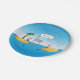 Ihre Speise! Dieser lustige Cartoon zeigt zwei Kasten, die auf ihren eigenen Inseln Volleyball spielen, mit einem Hai-Meer, das für einen nach einem Strey-Ball gewartet wird! Mit der Beschriftung "Dein Dienst". Es ist sonnig und schön mit einem coolen blauen Meer und Himmel. Dieses Design finden Sie hier für viele weitere großartige Produkte: