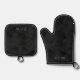 Sharp-Imitate gestanzt Schwarz-Pot-Holder Ofenhandschuh & Topflappen-Set