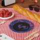 This simple paperplate has a shattered triangle abstract pattern. With a Chinese dragon!
