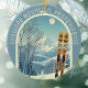 Ornament from a wonderful skiing holiday in the beautiful mountains of Shawnee Mountain Pennsylvania! This Ornament features an arch with a stunning blue-grey mountain landscape and retro ski boards in an orange tribal pattern in the foreground. The rest is in a lovely light blue tone with the location lettering in a modern font. The design is a lovely combination of retro and modern, and I hope you enjoy it!