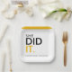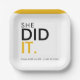 Celebrate a momentous achievement with this eye-catching "She Did It!" graduation paper plate. Featuring bold black and striking gold typography, this design is perfect for any proud graduate. The simple yet powerful message "She Did It" coupled with the class year serves as a fantastic centerpiece for any graduation party. Honor her hard work and dedication with this stylish and memorable addition to her special day, making her graduation celebration truly shine.