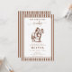 The invitation is framed by a sophisticated brown and white vertical stripe border, giving it a modern yet timeless feel. All text is fully customizable, allowing you to easily update the name, date, time, and location details for your specific event. Printed on high-quality cardstock, this invitation sets a warm and inviting tone for a beautiful celebration of love.
